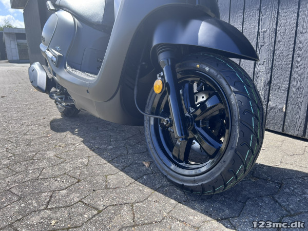 Udover det stilfulde udseende er den også udstyret med SYM’s topmoderne A.L.E.H (Anti-Lift Engine Hanger System). ALEH sikrer brugeren en behagelig køreoplevelse især ved acceleration. 4-taktsmotor