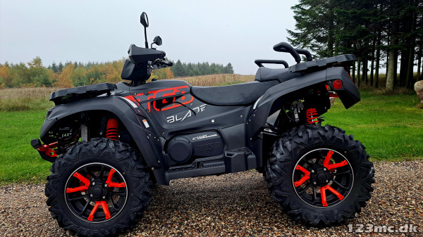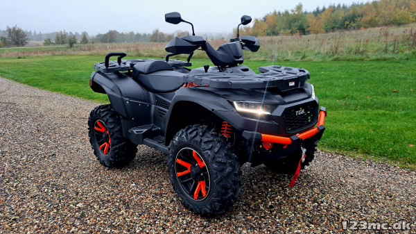 De bliver som standart leveret med 14" alu med 26" dæk, spil i front, LED for og bag og 3 trins servo.