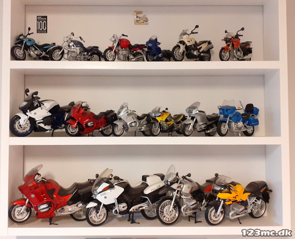 Mindre samling af BMW modelbiler og -motorcykler. Indkøbt over hele kloden.