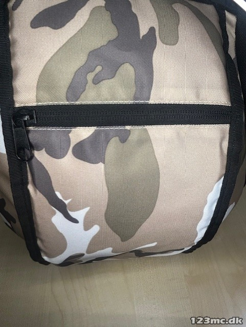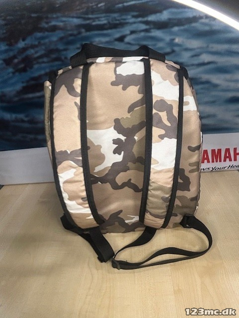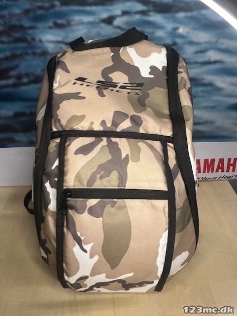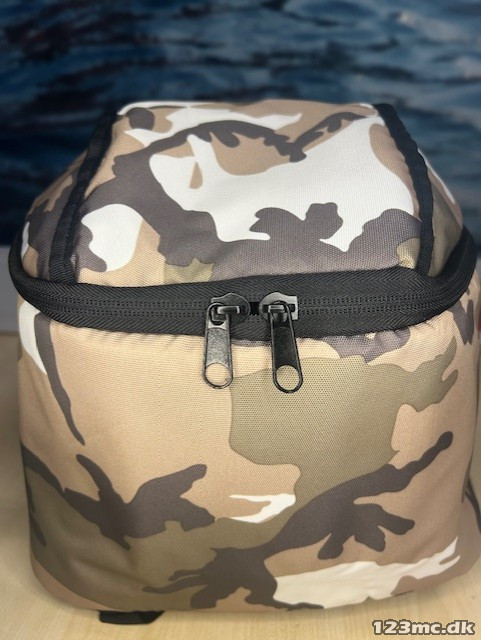 Lækker hjelmtaske/rygsæk fra LS2 i camouflage-tryk. Passer til alle slags hjelme uanset størrelse og model. tasken var også en lille forlomme hvor der er plads til f.eks pung og nøgler.