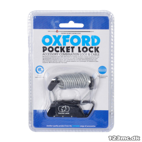 The Pocket Lock is a 3 digit resettable combination, cable lock.