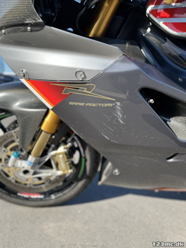 Lidt ridser på højre sideskjold fra "forfejlet håndtering" ved service hos Ducatti.