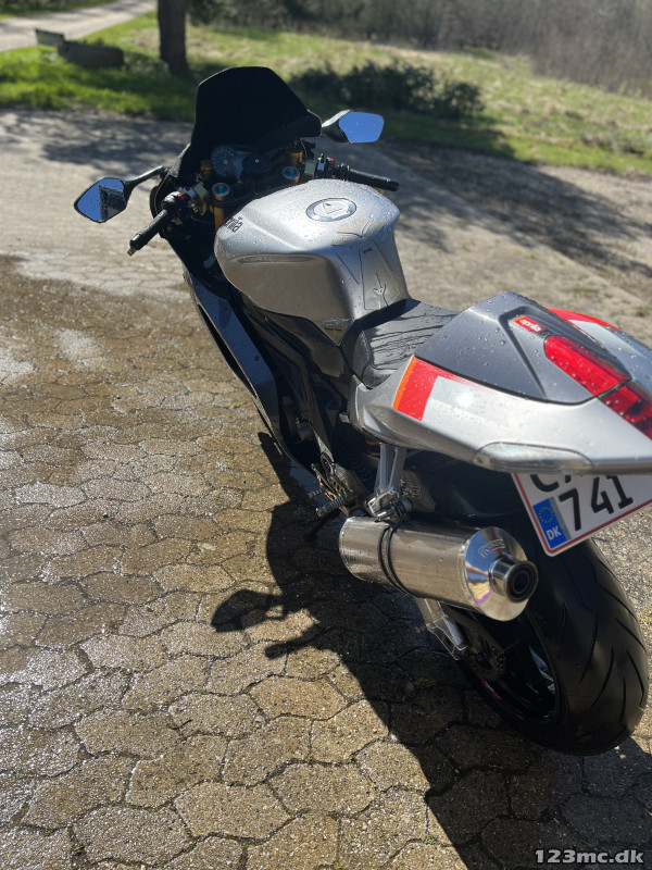 Bemærk at km. stand for 2004 Aprilia RSV modellen resetter ved skift af batteri, og derfor er det kun estimeret at denne har kørt imellem 20-30km. Jeg er tredje ejer. Sælges som beset og ekstraudstyr medfølger.