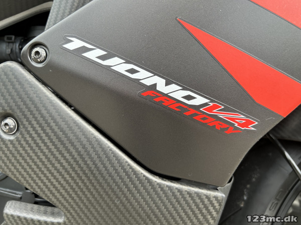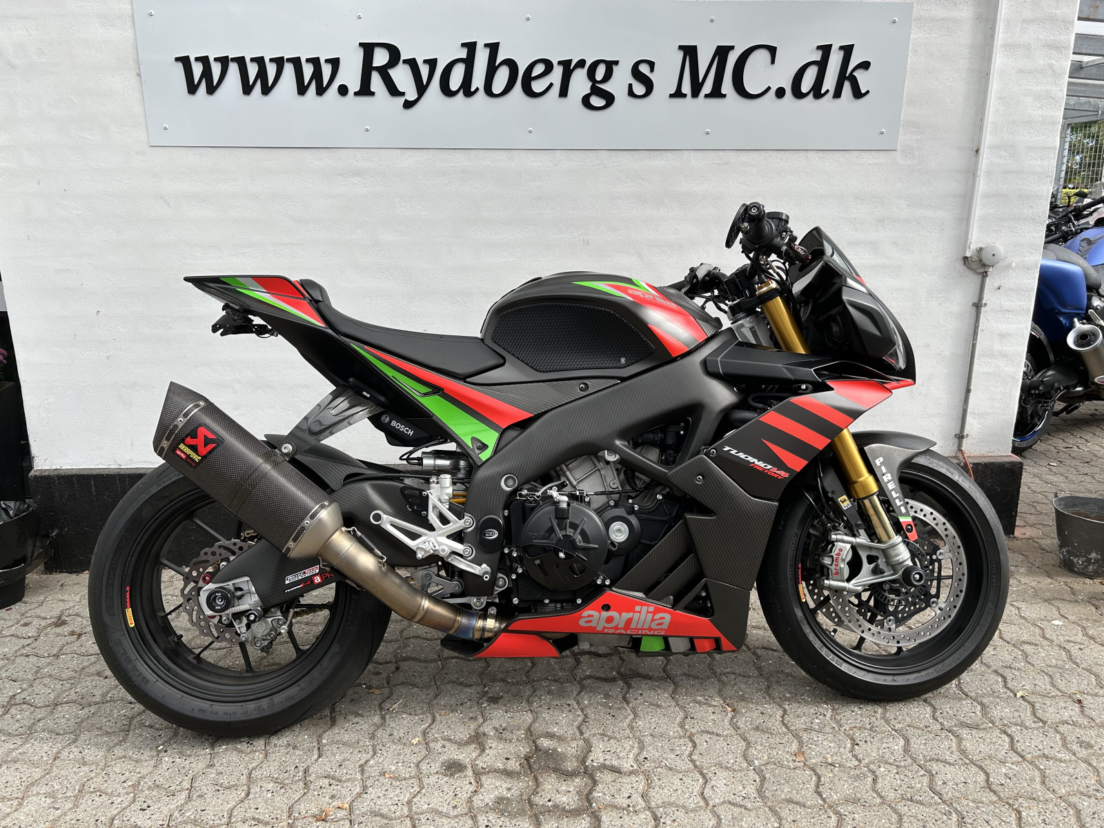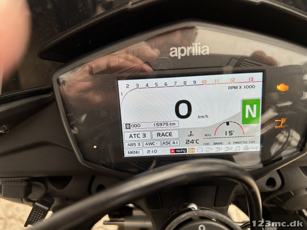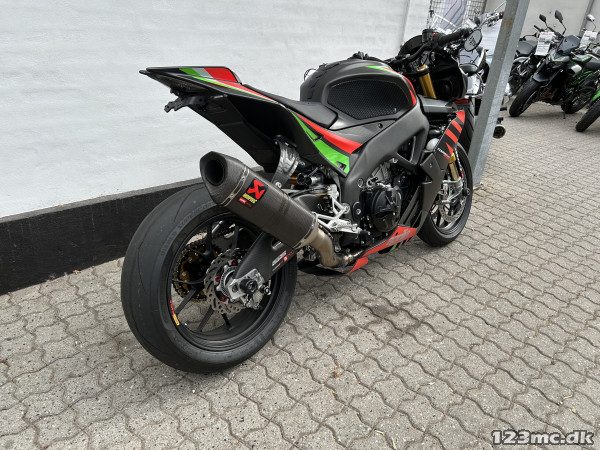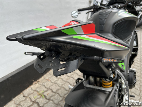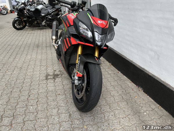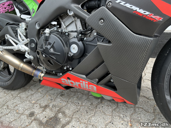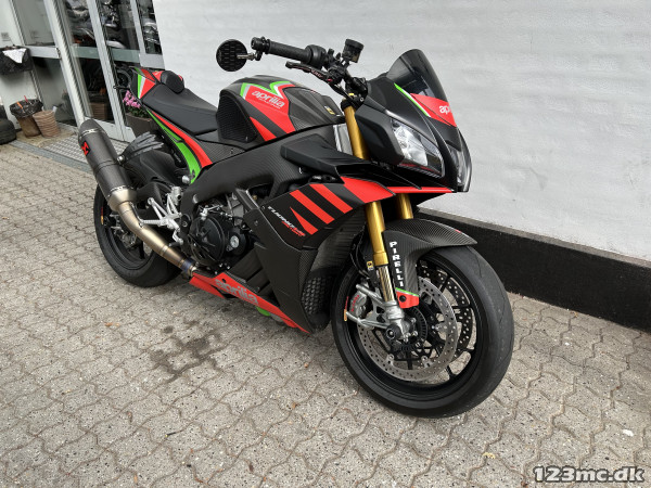 Mega lækker og velkørende motorcykel med Aprilias fede 1100 ccm V4 motor - vi taler her 175 hk i et let og stift stel, Ohlins affjedring både for- og bag, Brembo bremser, Akrapovic udstødning Titax forged alu hjul (originale hjul medfølger) og masser af Carbon.