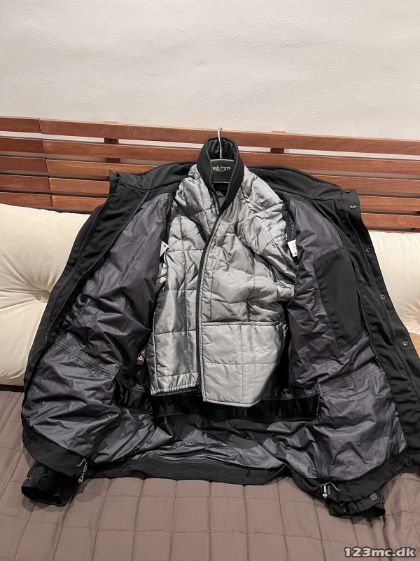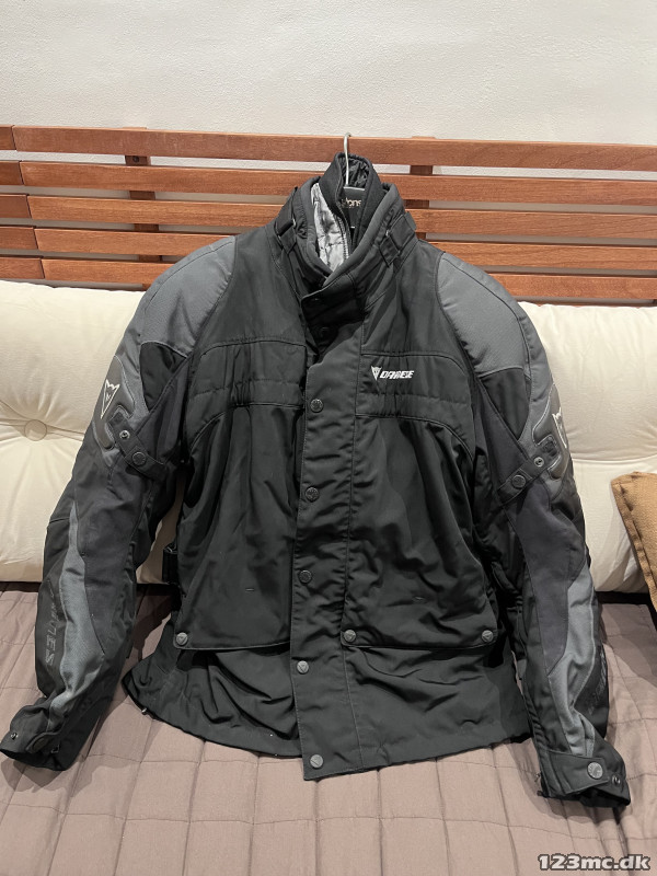 Ældre Dainese stof MC jakke. Brugt få gange. M. diverse beskyttere. Fin kvalitet. M. termofor. Str. 56. Kan bruges hele året.