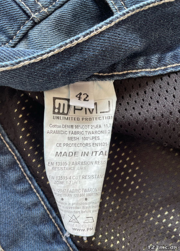 MC bukser. Herre. PMJ - Demin/Aramidic med knæbeskyttere. Herre str. 42. Liv 103cm / skridtlængde 82cm.