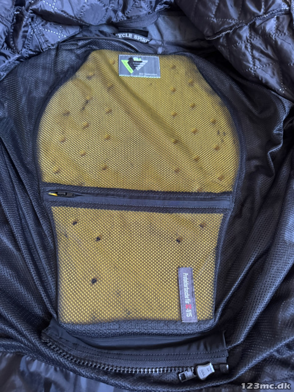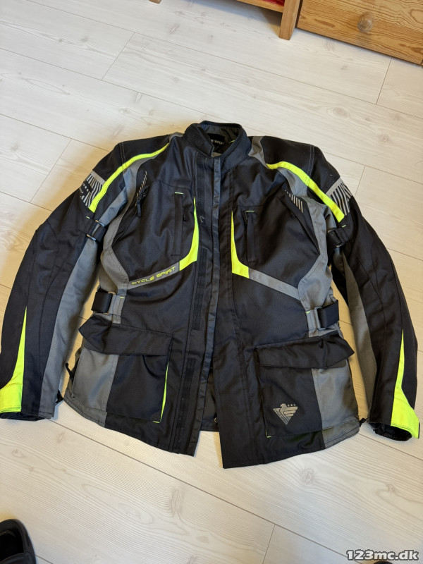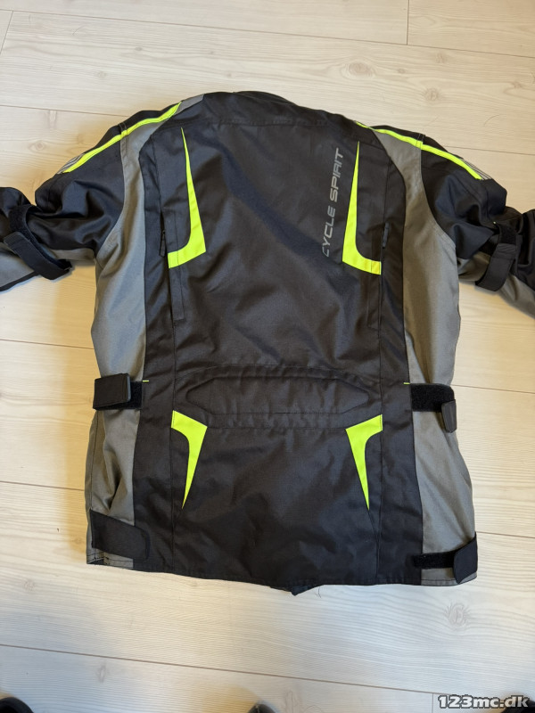 Jakken er fra Cycle Spirit og har masser af lommer og praktiske detaljer, så som ventilationsåbninger både foran og i ryggen. Inderfor kan lynes af, og så har man en sommerjakke. Jakken har rygskjold, der kan tages ud, hvis man vil.
