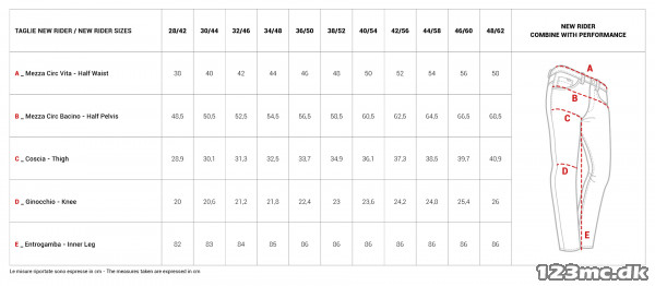 Size range: 28 (42) to 48 (62)