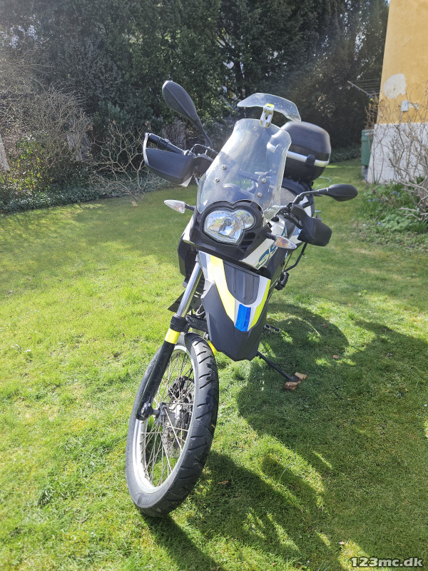 Fremstår med blå/gule reflexer for øget synlighed. Tilbehør der medfølger: Forhøjet og standard saddel; sænkede og standard foot pegs; vindskærmsforlænger; Rags til saddeltasker; 2*25 liter GIVI saddeltasker; 2 MC jakker og 2 par bukser, og 3 hjelme.