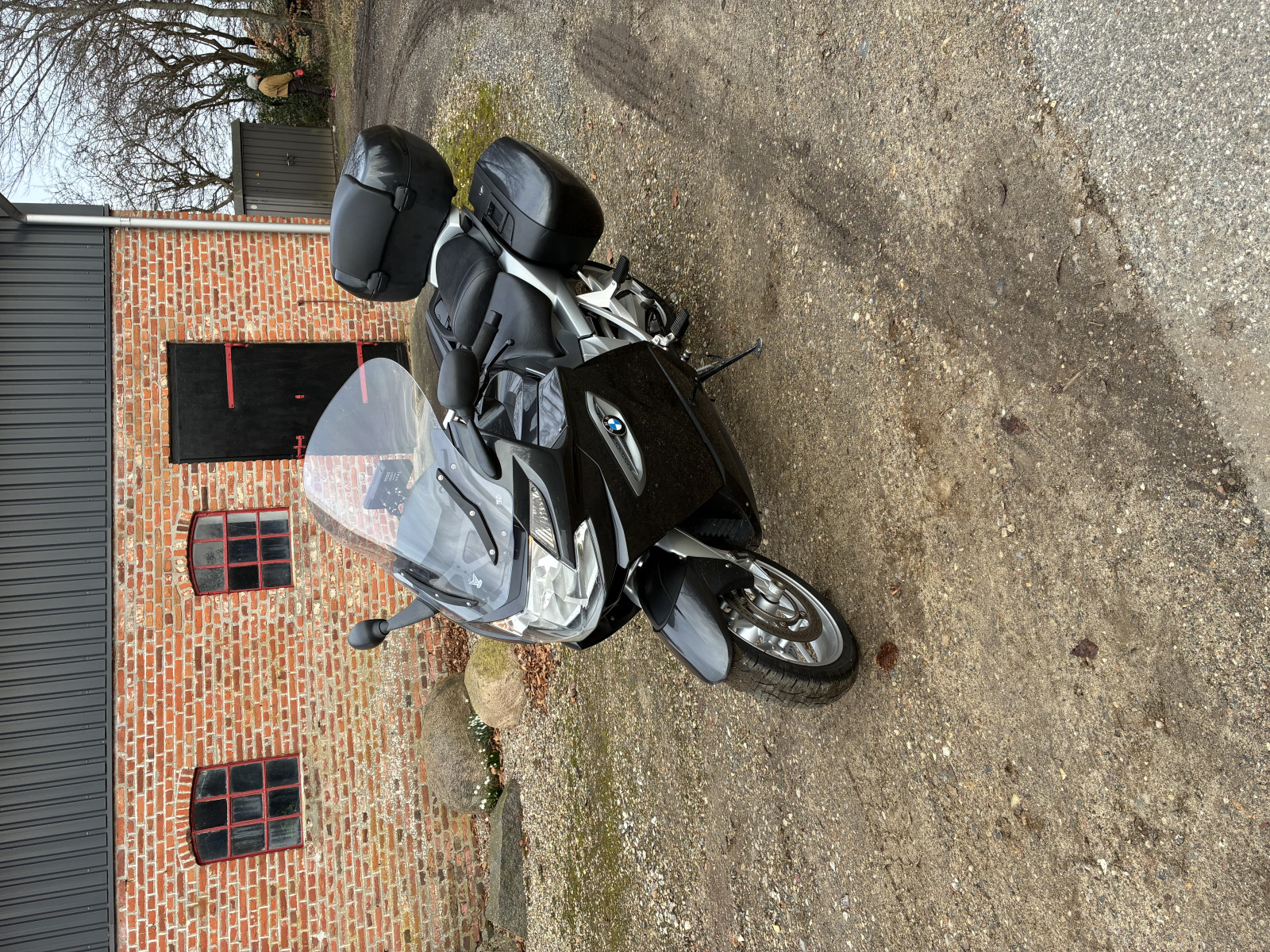 Der følger en del ting med. Der er klar folie på toppen af side taskerne den er sænket fodviler er sænket styret er hævet forhøjet kåbeglas original medfølger gps extra sæde abs blok er skiftet