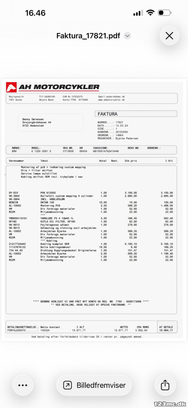 Nysynet 23/4 2026. Fantastisk velkørende maskine. Original udstødning medfølger. Originale sidetasker med indertasker.