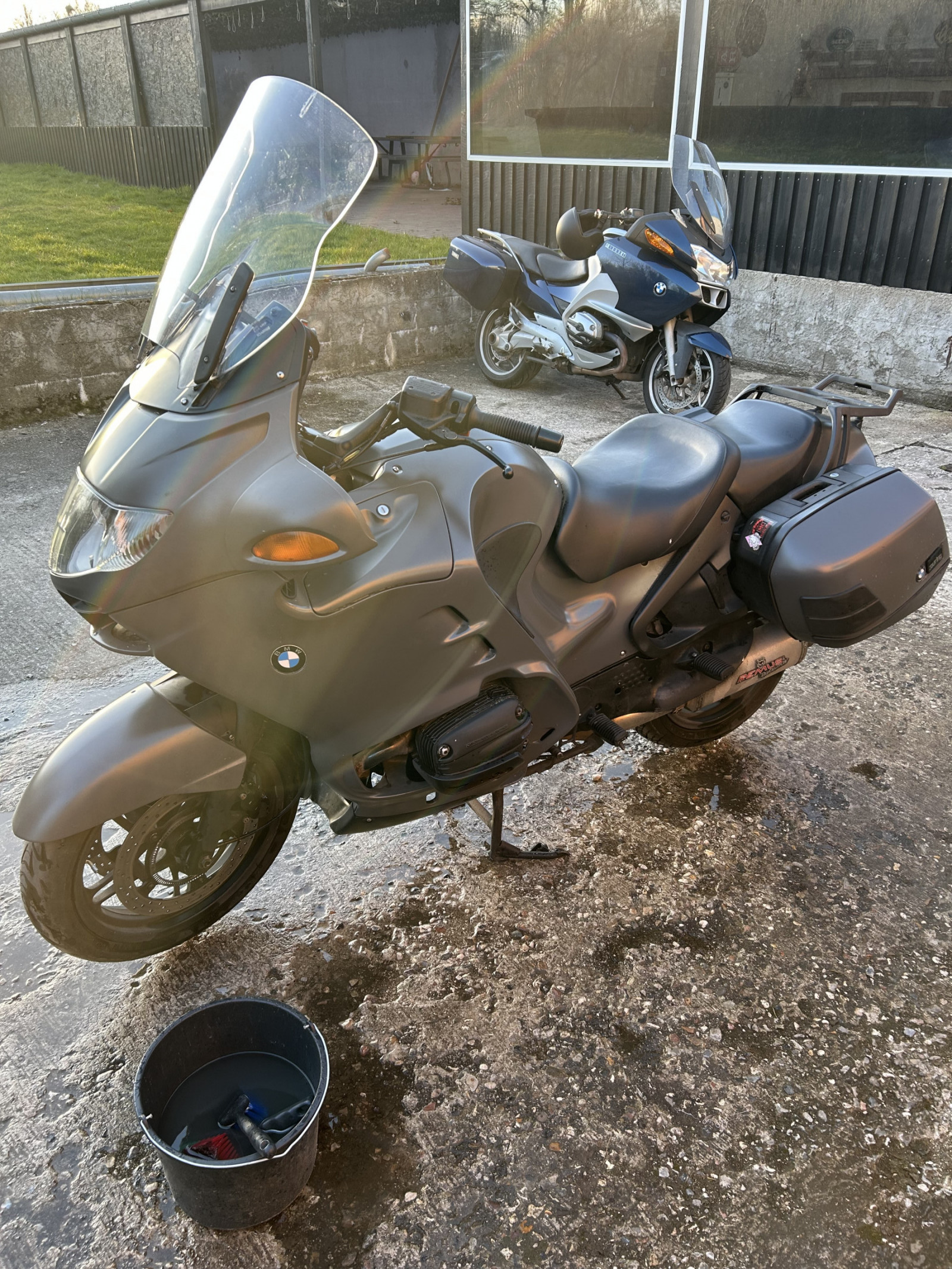Jeg har altid haft indfarvede sidetasker og topboks fast monteret året rundt, og med BMW indertasker i alle tre. Det giver det udseende og volumen jeg godt kan lide, samtidig med at du altid har plads til noget regntøj og andet som f.eks. en kasket eller lette sko, elle hvad man nu syntes man skal have ombord. Skal man på ferie og også har en tanktaske er der rigelig plads til to personers bagage til en ferie på 2-3 uger. Jeg har altid kørt på asfaltveje, gerne de små, men aldrig på grusveje, det er en anden type folk og maskiner. Hader snavsede motorcykler. Sådan er det, nogle foretrækker mudder andre ikke. Jeg har ikke solgt den sidste maskine endnu, det sker først efter Påskeferien.