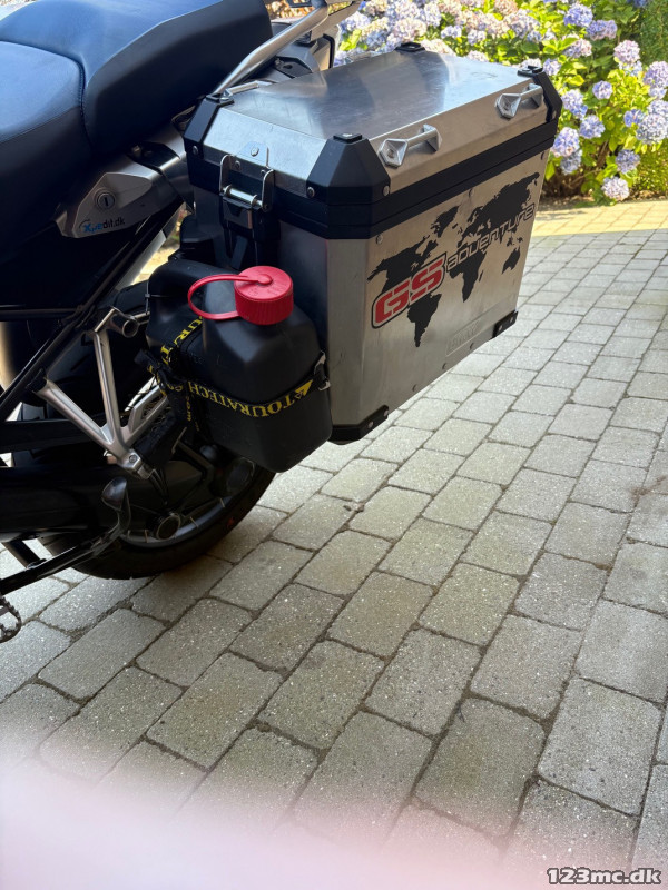 Alle udstyrspakker samt quick shift, BMW Navi 5 og 3 originale BMW Alutasker.GS tanktaske fra SW-motech, styrforhøjer, 2 holdere til drikkeflasker og laserskåret rustfri holder til Go-pro kamera.