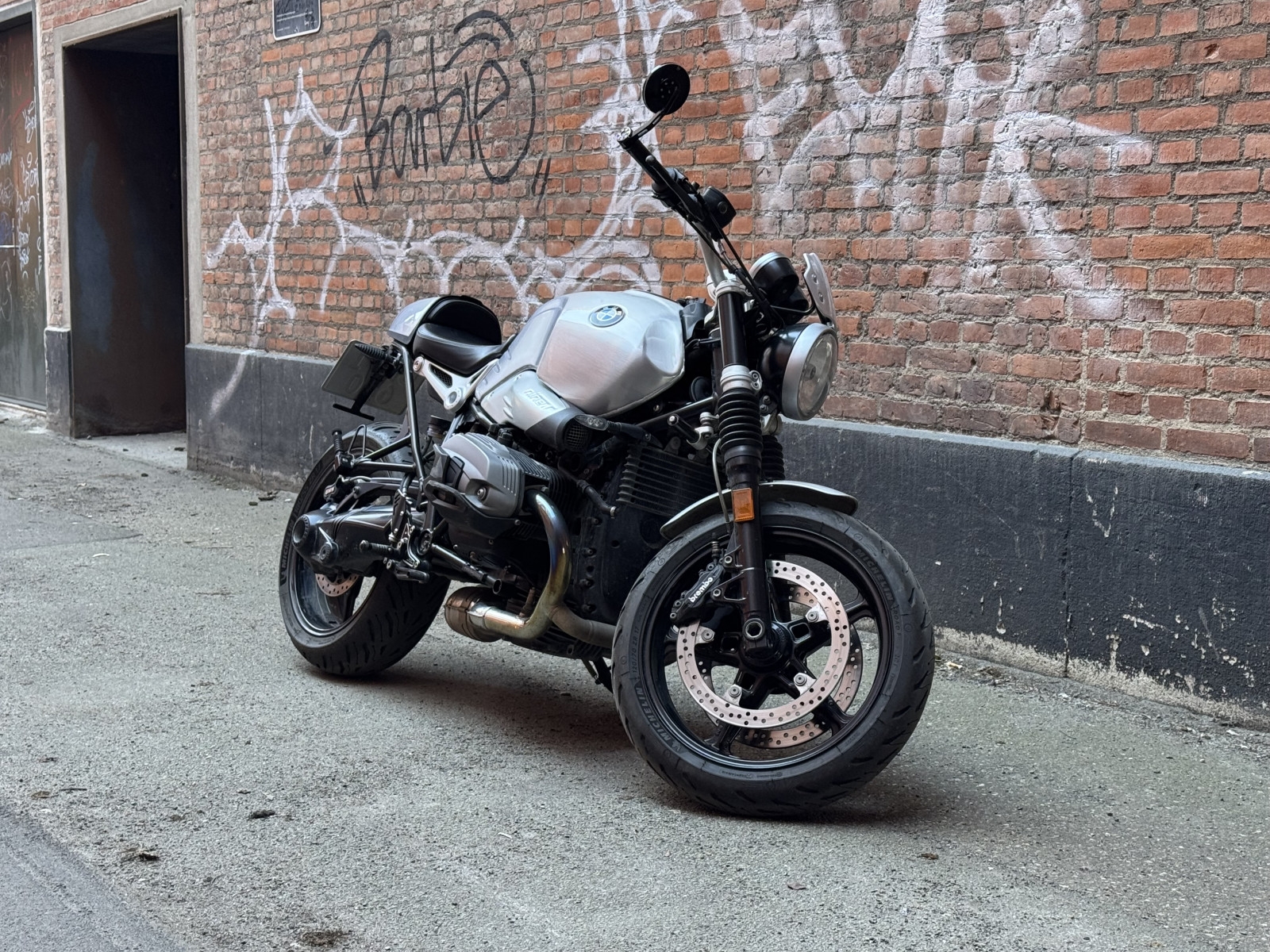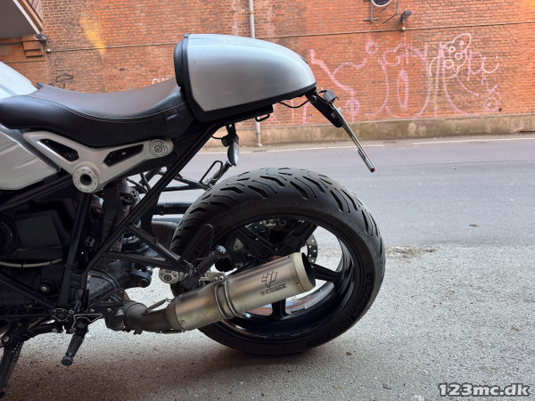Flot BMW R Nine T der skiller sig ud med Option 719 (børstet aluminium) og ekstraudstyr fra Wunderlich, herunder: