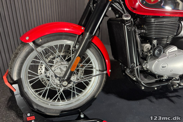 Den moderne Gold Star bringer mange klassiske design-elementer videre — runde forlygter, “retro”-tank med krom og pinstripes, wirefælge, og en mere opret / komfortabel siddeposition, som alligevel giver en klassisk og “vintage” følelse.