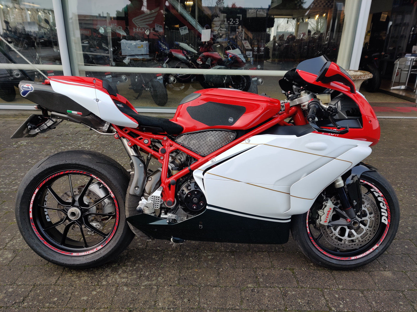 Ombygget med 1098 forgaffel, hjul, bremser & master, Full system fra termignoni, Mono bagsvinger,