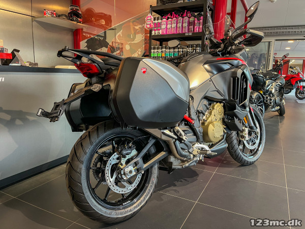 Når du køber denne Multistrada V4 følger der nu 4 års fabriksgaranti med fra Ducati med ubegrænset kilometer.