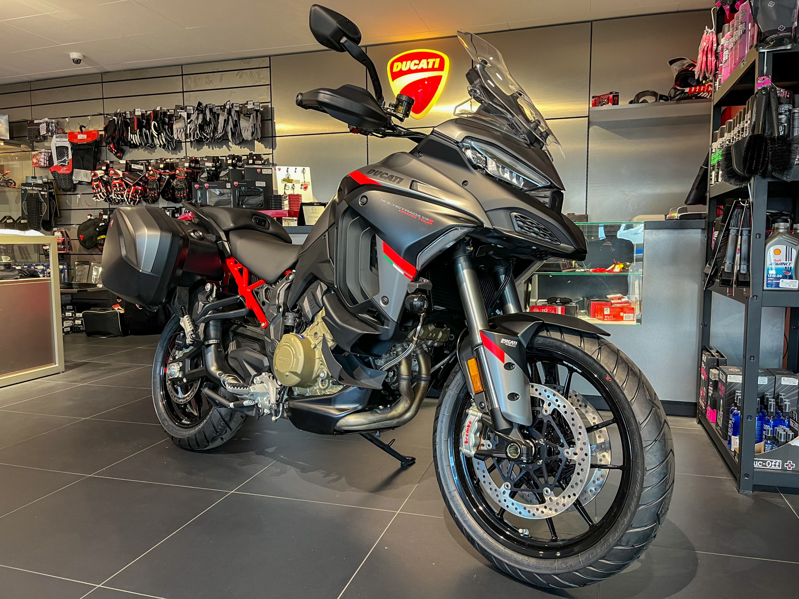 Herunder vises udstyr og tilbehør, som passer til Ducati Multistrada V4 S. Produkterne kan købes hos forhandleren, som sælger den viste motorcykel.