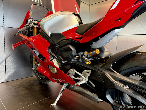 Panigale V4 R er udstyret med MotoGP-inspirerede Corner Sidepods, Ducati Racing Gearbox med neutral under første gear og avanceret elektronik udviklet af Ducati Corse. Resultatet er en superbike, der kombinerer ekstrem fart, præcision og kontrol – med en topfart på over 330 km/t i banekonfiguration.