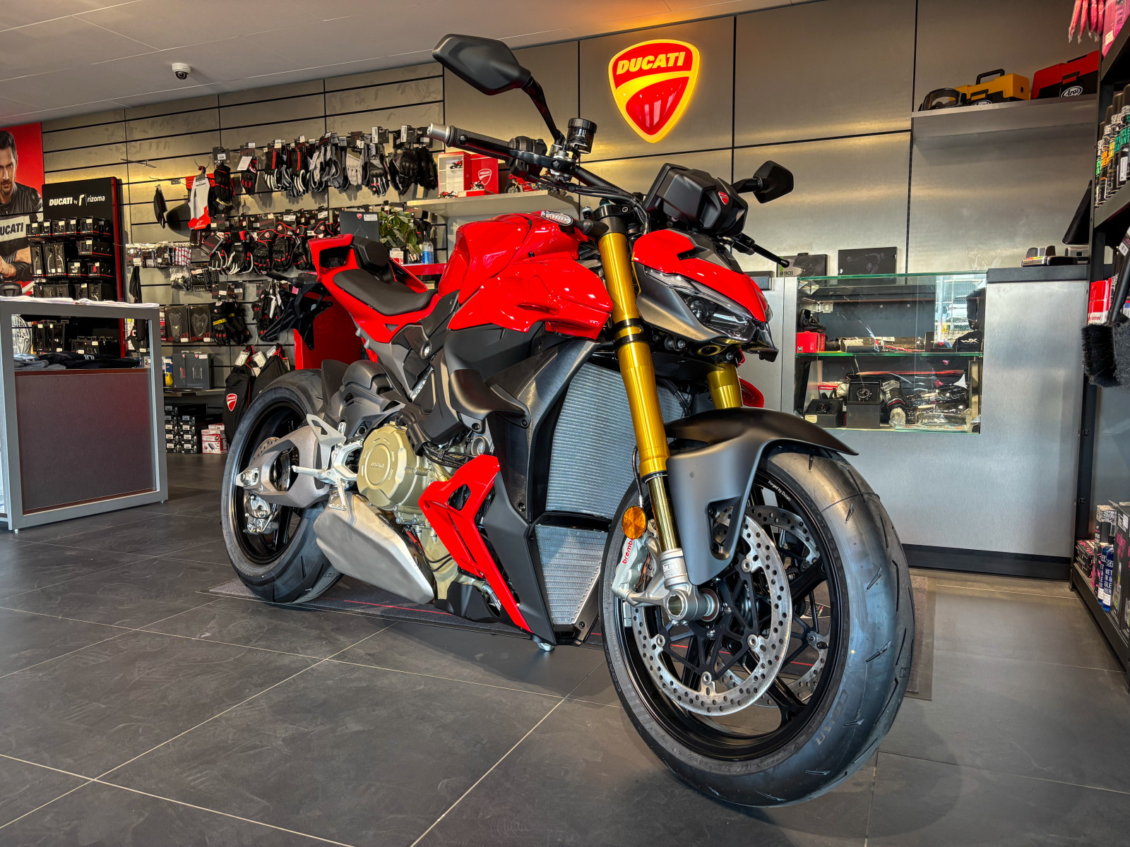 Herunder vises udstyr og tilbehør, som passer til Ducati Streetfighter V4 S. Produkterne kan købes hos forhandleren, som sælger den viste motorcykel.