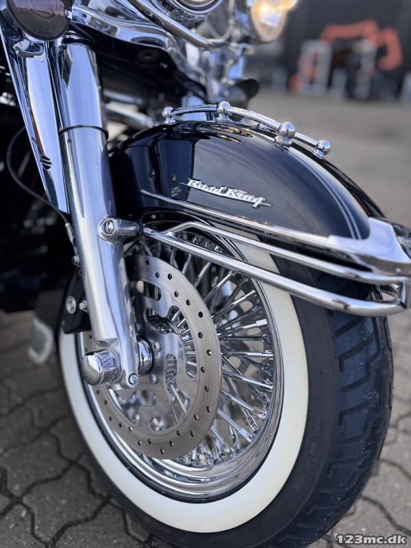 Udstråling, lyd og motorens bundtræk kendetegner HD, og en Road King er fed at cruise rundt på, at vise frem og eje - elsker den! Meget nemmere at "kaste rundt" end min Electra Glide Ultra Classic, og så er det fedt, at man kan tage kåbeglasset og ryglænet af, hvis man vil køre "Naked". Desuden nem at servicere selv, da alt på motoren sidder, så man kan komme til det.