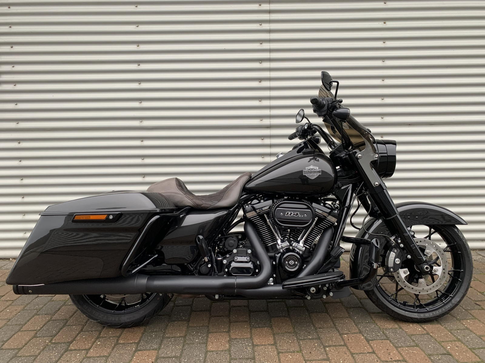 FLHRXS Road King Special med alt i sort/sort & 114" / 1868ccm. Farven er Two Tone Gråmetal / Sortmetal & resten Blackout fra fabrik.
