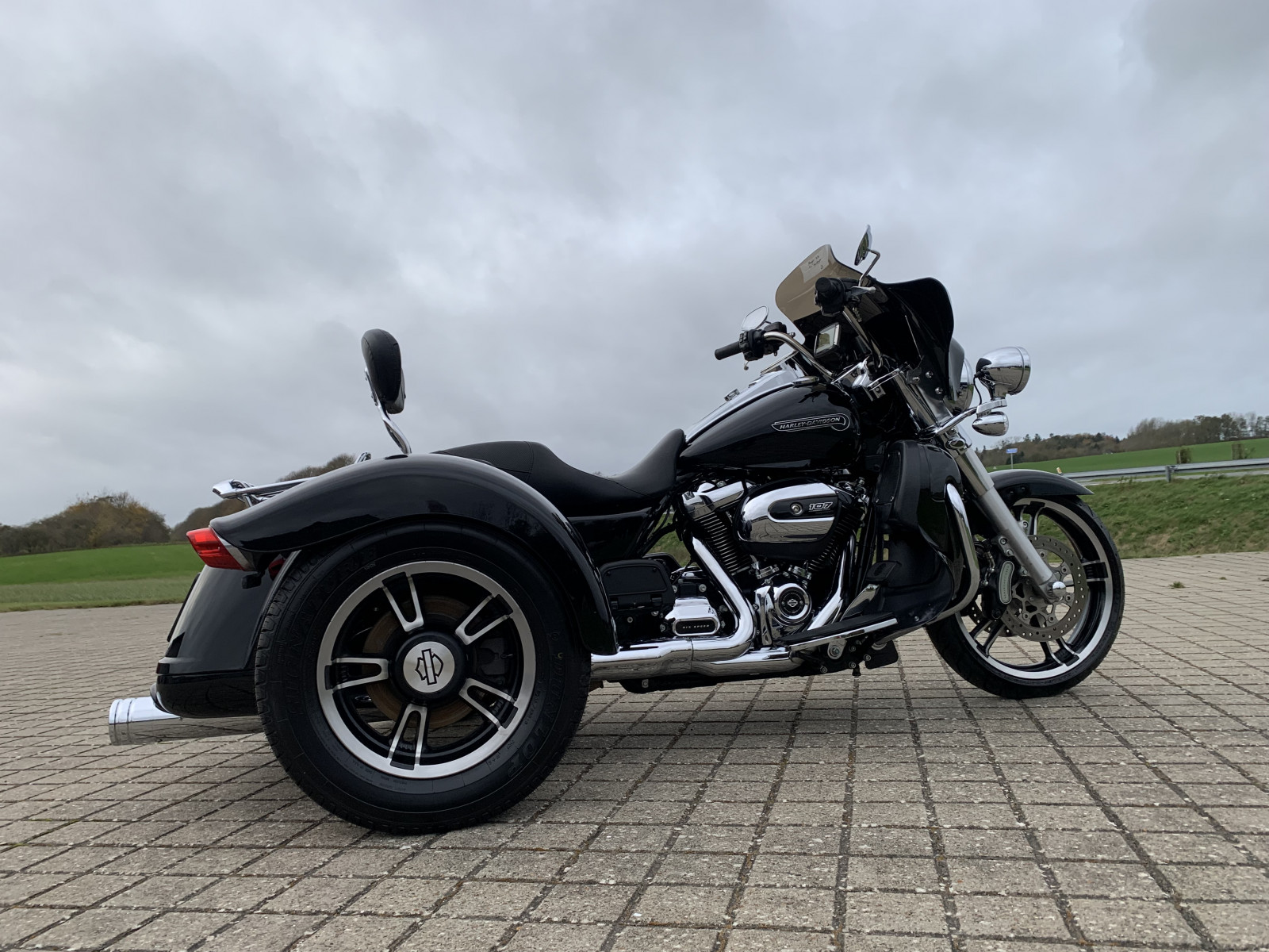 Harley FLRT Freewheeler sjælden udbudt.model der ikke hænger på alle gadehjørner. Denne model er med den nye 107" M8 Motor.