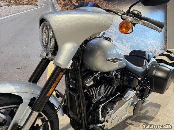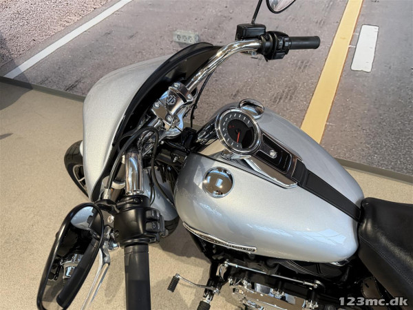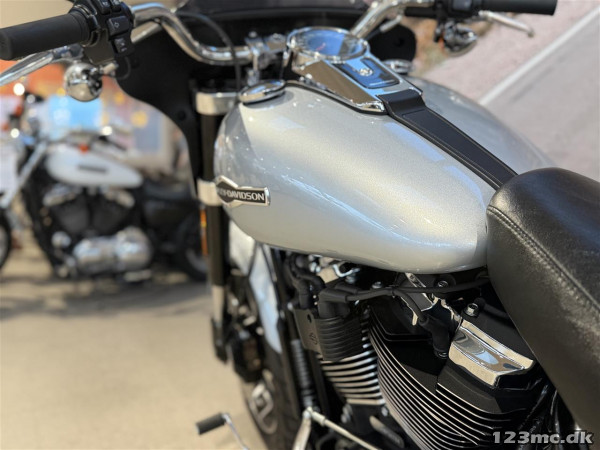 Denne FLSB Sport Glide kommer i den originale lakering "Barracuda Silver", som virkelig får motorcyklen til at fremstå flot & elegant.