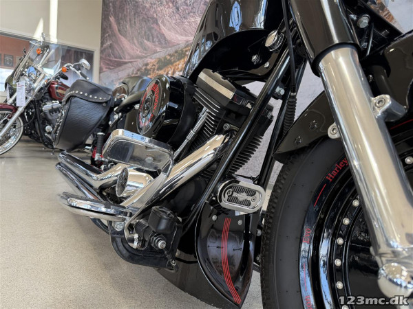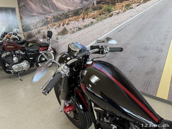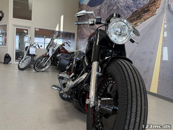 Alt i alt en utrolig flot ombygget Softail med den helt rigtige lyd.