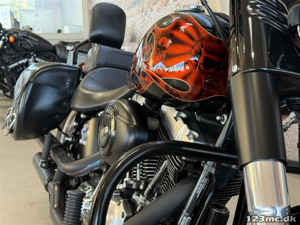 Utrolig flot og velholdt FLSTF Fat Boy 103" med en masse lækkert udstyr og originalt Harley-Davidson Custom Paint Kit nr. 160 ud af 200.