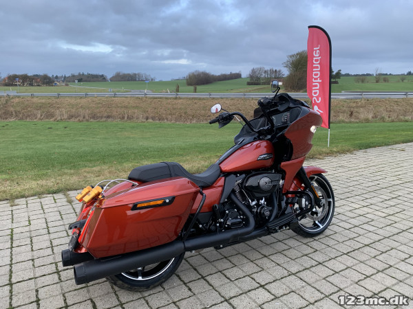 Model 2024 M8 117", ABS, 5HD Europa Model. Farven er Metallic Blood Orange - Black. KUN 18.000KM og godt med fint udstyr :-).