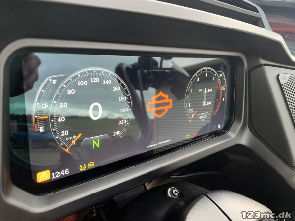 Cruise control/fartpilot, Skyline Infotainment system, 12.3" full color TFT skærm, USB/MTP/iPod/iPhone. Hill-hold, Defensive Rider Systems (RDRS, C-TCS Traction Control, Linked Braking C-ELB). Clockwerk tonet højere kåbeglas, sorte motorbøjle og taskebøjler , Vanes & Hines slip-on potter med fin dyb lyd, öhlins justerbare støddæmper (ekstra udstyr for 40.000KR).