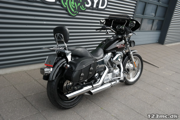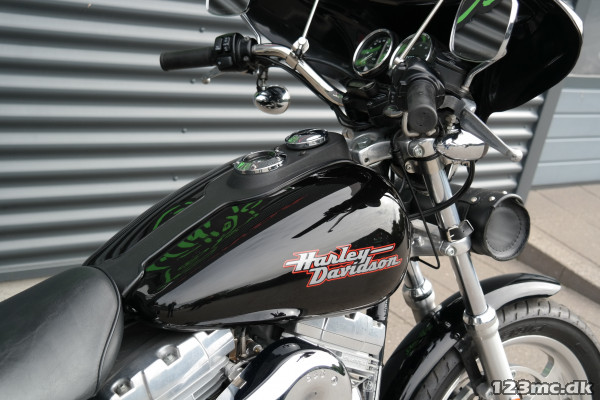 Dyna Super Glide med Screaming Eagle. går super godt og har trækker helt tosset. cyklen er ellers i fin stand. og sælges til fornuftig pris. Husk vi bytter meget gerne. Vi hjælper også gerne med en god og billig finansiering, Både med og uden udbetaling. Husk vi har Sydjyllands største udvalg i nye/brugte motorcykler altid i nærheden af 500stk. på lager., sidetasker, Bagagebærer, Batwing, Sissybar