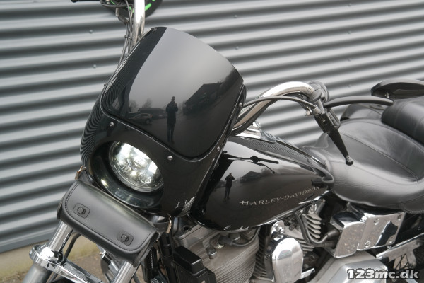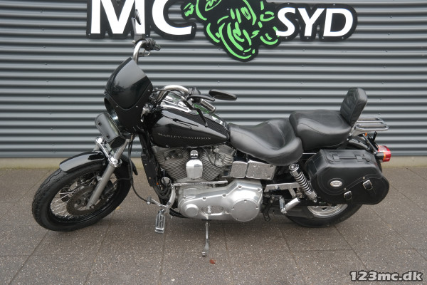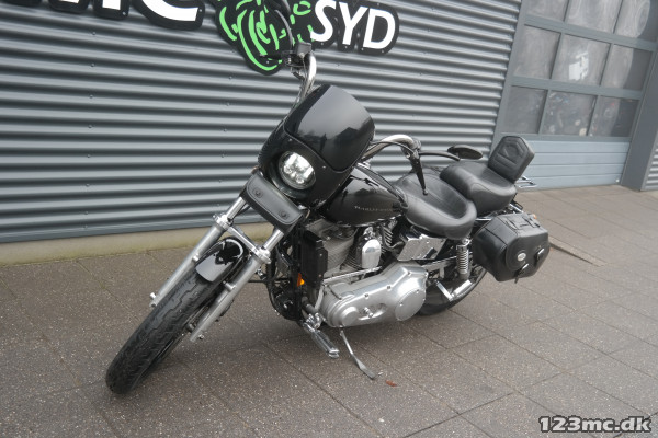 Super fed Dyna i Club style. virkelig velholdt, kører og lyder perfekt. Vindskærm medfølger. Husk vi bytter meget gerne. Vi hjælper også gerne med en god og billig finansiering, Både med og uden udbetaling. Husk vi har Sydjyllands største udvalg i nye/brugte motorcykler altid i nærheden af 500stk. på lager., sidetasker, halvkåbe, Bagagebærer, Sissybar, Fremflytter sæt