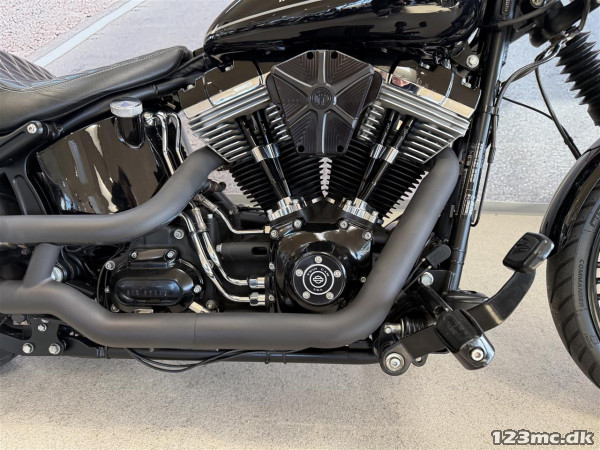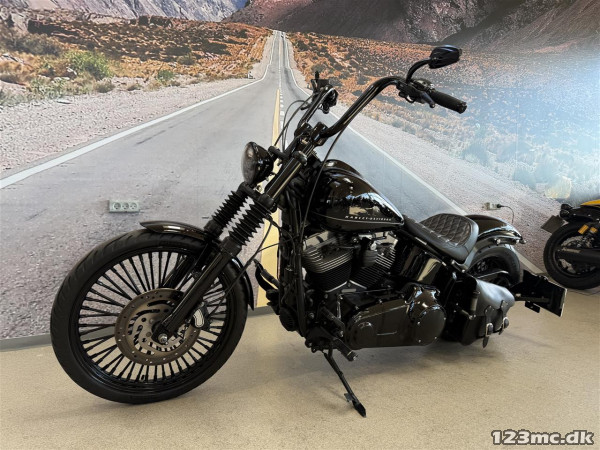 Vandvittig flot & unik custom ombygget FXS Blackline 96" Softail, med Jekill & Hyde elektronisk spjæld udstødning, Fatspoke fælge med 200-bagende osv.