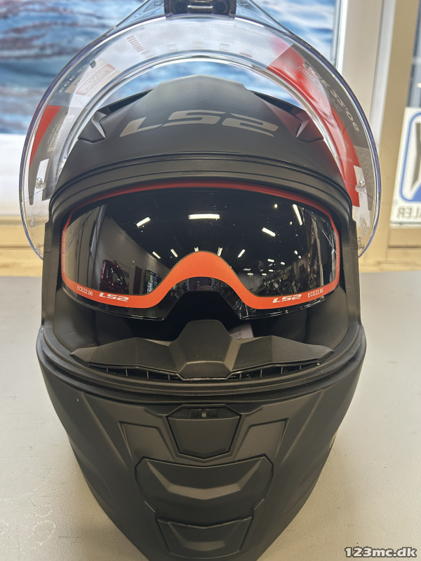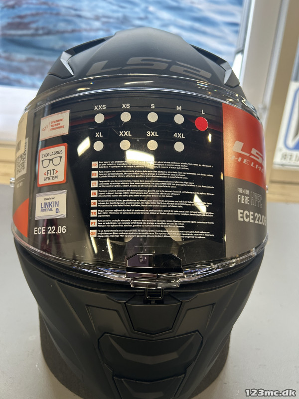 Fullface fiberhjelm fra LS2 i matsort. Indbygget solvisir og med antidug. God ventilation både for og bag. Dejlig komfort i puderne og med ekstra plads til briller. Hjelmen er forberedt til LINKIN Intercom og med let og smidig kliklåsesystem.