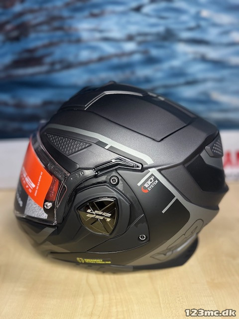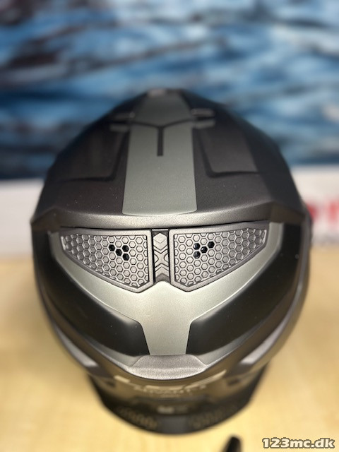 Hjelmen kommer med antidug (pinlock) og har et indbygget solvisir som går dejligt langt ned og som er placeret langt ude så du let får plads til briller.