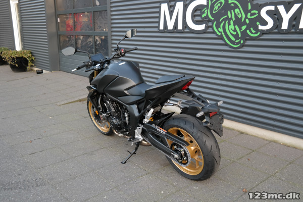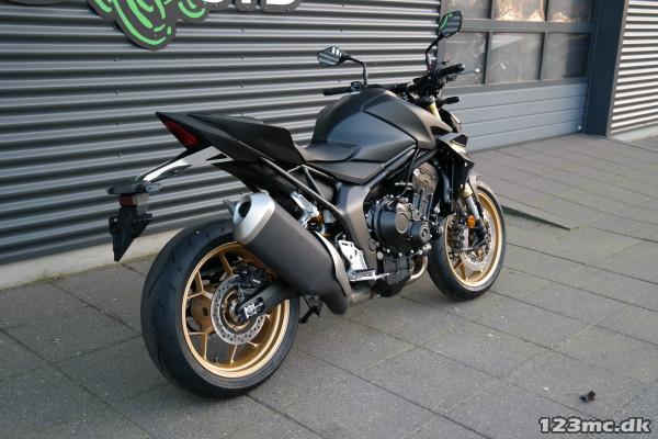 CB1000 Hornet SP fås i Mat Ballistic Black Metallic med Desert Gold Metallic-fælge og guldfarvede forgaffelben, hvilket giver den et unikt og luksuriøst udseende. Ekstraudstyr som Alcantara-sæder, tankbeskyttere og opvarmede håndtag giver mulighed for personlig tilpasning, der øger både stil og komfort.