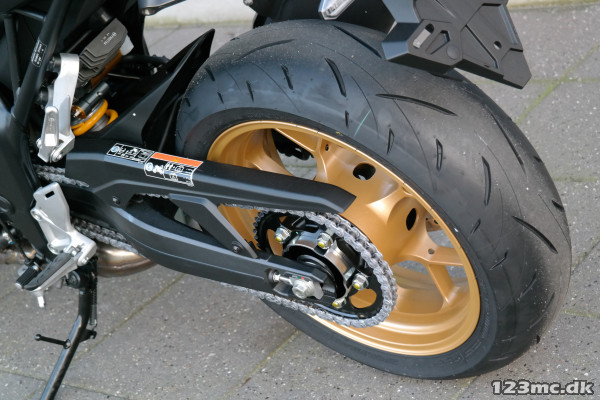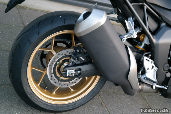 CB1000 Hornet SP er udstyret med 41 mm Showa SFF-BP forgaffel og en Öhlins TTX36 bagdæmper, der begge er fuldt justerbare for optimal kørekomfort og kontrol. Brembo Stylema radialmonterede bremsekalibre med fire stempler og 310 mm flydende skiver sørger for præcise og kraftfulde opbremsninger, mens CBR1000RR-R-inspirerede fælge bidrager til den rå stil og skarpe køreegenskaber.