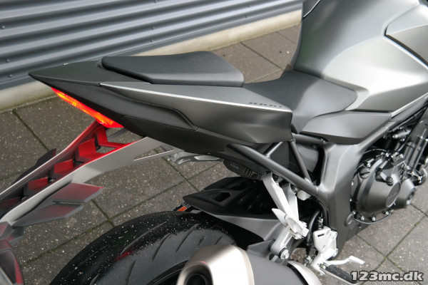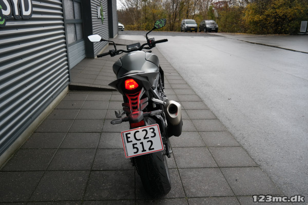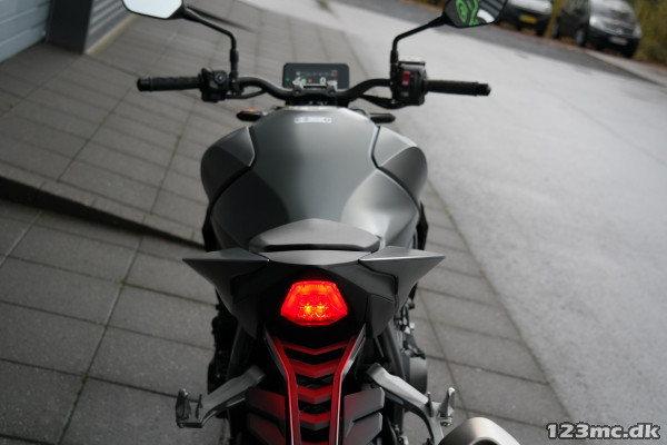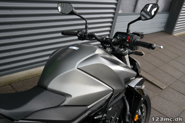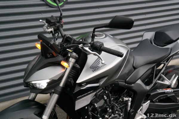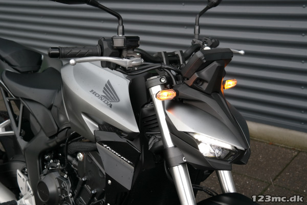 CB1000 Hornet skiller sig ud med sin kompakte og aggressive styling, der understreges af de dobbelte LED-forlygter og den karakteristiske brændstoftank. Det minimalistiske design er inspireret af streetfighter-looket og afspejler Hondas filosofi om funktionelt og råt design uden overflødige dekorationer.