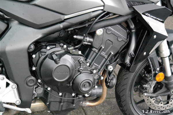 CB1000 Hornet drives af en 1000cc firecylindret DOHC-motor, hentet fra CBR1000RR Fireblade, og yder 148 hk med et drejningsmoment på 104 Nm. Motoren leverer et jævnt moment i mellemområdet og intens acceleration ved højere omdrejninger. Med Throttle By Wire-systemet kan du vælge mellem tre køreindstillinger – Rain, Standard og Sport – plus to brugerdefinerede indstillinger, som sikrer maksimal kontrol og tilpasning til dine præferencer.