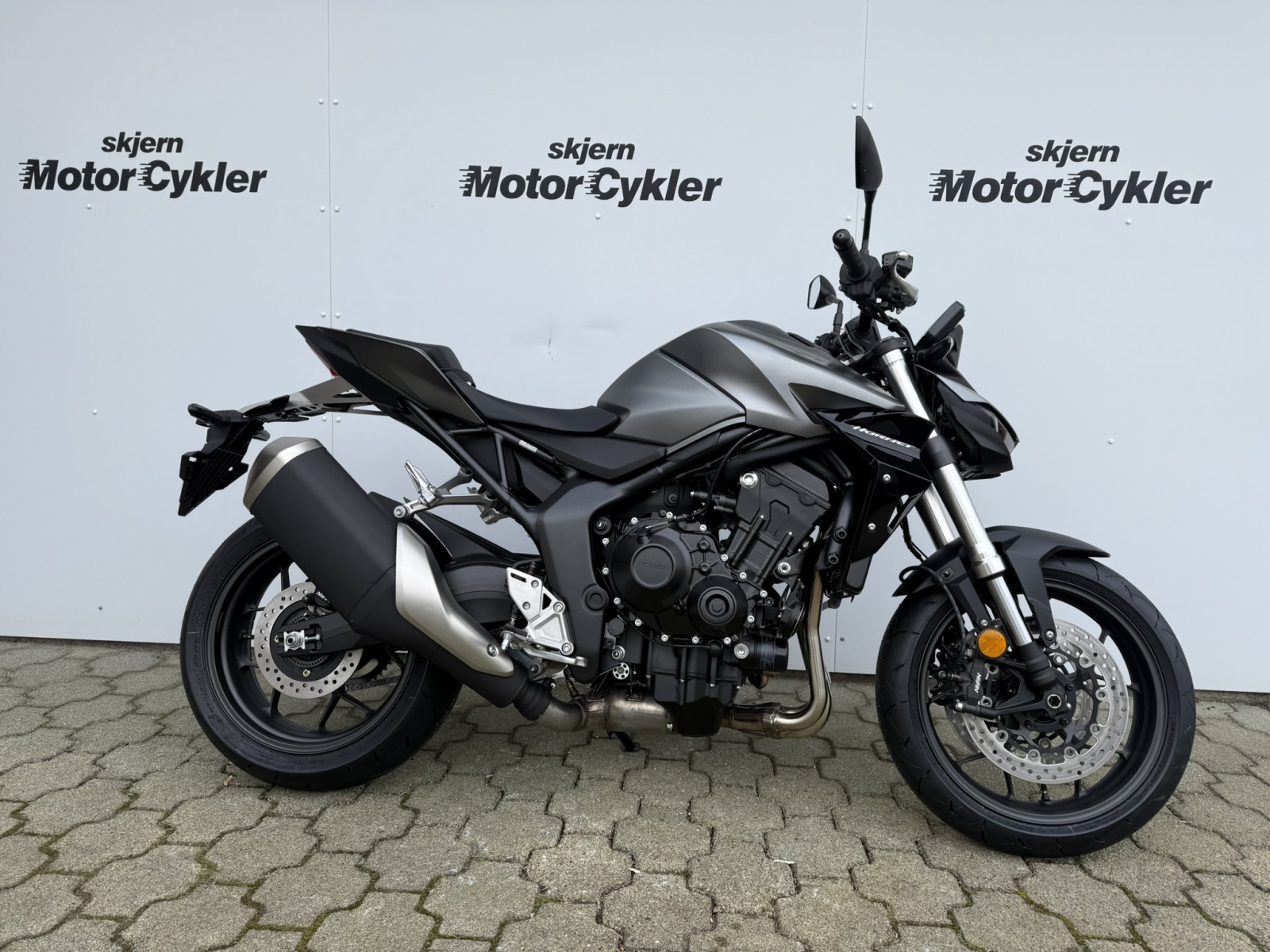 Honda CB1000 Hornet **MAT IRIDIUM GRAY METALLIC** Honda Selectable Torque Control - Wheelie Control - Throttle By Wire (TBW) - Fuldt justerbar 41 mm Showa SFF-BP USD-forgaffel - Showa Pro-Link bagdæmper - HISS (Honda Intelligent Security System) - ESS-funktion (Emergency Stop Signal) - 5" TFT-display med brugerdefinerbart layout, herunder speedometer, omdrejningstæller, ur, gearposition, gearskiftindikator - 2-kanals ABS bremser - LED for/bag