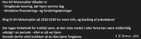 Ring til AH Motorcykler på 2426 0190 for mere info, og booking af prøvekørsel