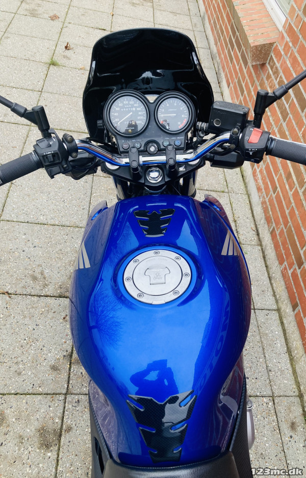 Sælges: Den her fine sport street cykel, med den rigtige opretsiddende køre komfort. Står meget flot/velholdt, kører godt. Kædekit fint/ok, dæk gode. 2års Garanti, leveres nysynet. Udstyr: røgfarvet kåbeglas, styrtbøjler, centralstøtteben. MFF Forsikring - ansvar &kasko Måske Danmarks billigste motorcykelforsikring - lad os give dig et rigtig godt tilbud... A2 kørekort muligt