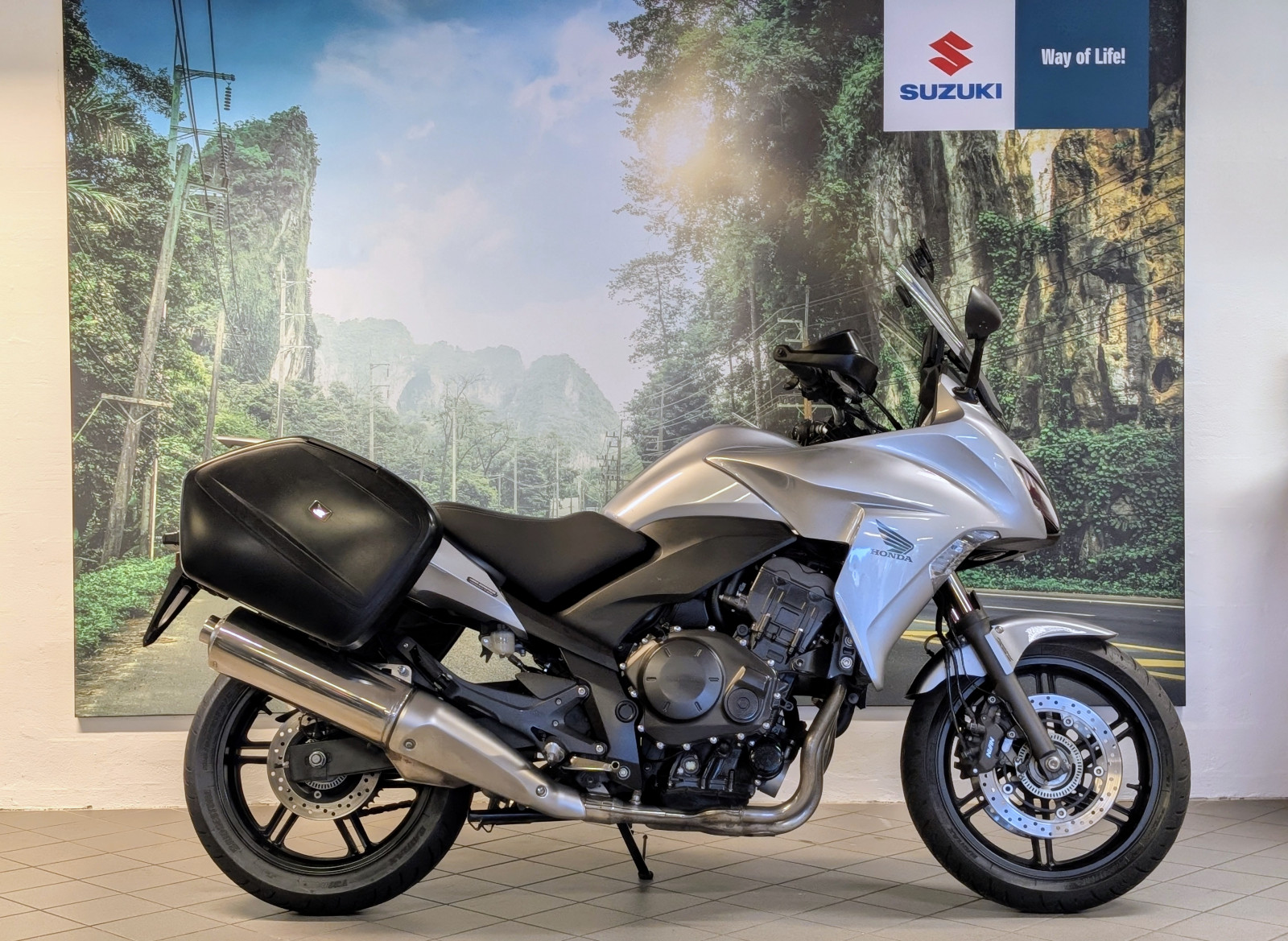 Super flot og velholdt CBF1000 (bemærk ny model ) med originale Honda sidetasker, Puig touring vindskærm med spoiler på, handguards, Hyperpro fjedre i forgaffel og Hyperpro bagdæmper, Garmin Zumo 395 navigation (ikke omfattet af garantien på motorcyklen) speciallavet sæde med gel i, ABS bremser, indsprøjtning.