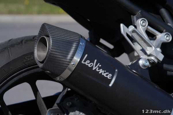 Cyklen har fået monteret en Leo Vince Nero slip on udstødning. DB-killeren på denne er fjernet for at få en endnu federe lyd. Standard udstødningen medfølger naturligvis i salget