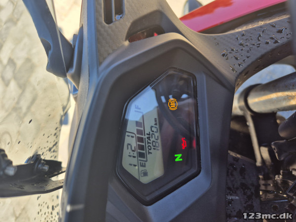 Der er sat sports Kit på som indebærer carbon skærme og den røde staffering på fælge og mørktonet vindskærm.