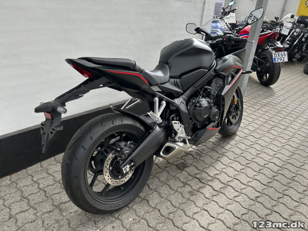 Virkelig flot, kun lige tilkørt Honda CBR 650 R i den eftertragtede matsorte lakering.