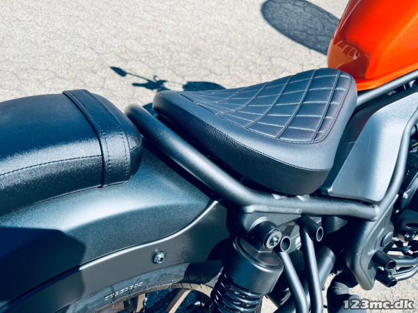 Startspærre (HISS) – Slipperkobling – Digital instrumentering med speedometer, omdrejningstæller, dual trip meter, brændstofniveau og forbrug, ur og skifte- og gearindikator – ABS-bremser – LED for/bag – 41 mm teleskopgaffel – Dobbelte støddæmpere med justerbar forbelastning – Fabriksmonteret forlygteskal – Røgfarvet skærm – Retro gaffelmanchetter – Særligt sæde med diamantformede syninger.
