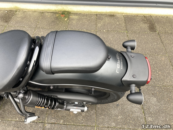 Nye farver og en redesignet 2-1-lyddæmper med ‘shotgun’-udformning motoren EURO5- standarden, mens en slipper-kobling gør gearskift nemmere med mindre bevægelse i gearpedalen. Tilgængelig og nem at håndtere: Rebel har en lav sædehøjde og afslappet kørestilling med let udstrakte arme og fodhvilere i medium højde samt et nyt, bekvemt sædedesign. Nye affjedringsindstillinger for og bag strammer kørslen op, og støddæmperen er nitrogenfyldt for ekstra kontrol. Alle lygter er udført med LED, der er digital indikator for gearpositionen. ABS bremser, kørecomputer, gearindikator, infocenter, slipper kobling